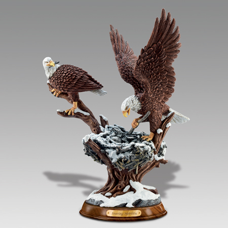 Available exclusively from The Bradford Exchange, each American bald eagle masterpiece in this thrilling sculpture collection transports you to an intimate treetop vista vibrant with eagle life. Exquisitely handcrafted of artist\'s resin and carefully hand-cast and hand-painted to showcase every intricate detail of the eagles\' impressive plumage and expressions, this limited-edition collection captures fully-dimensional representations of the \"eagle cam\" view and vantage point.